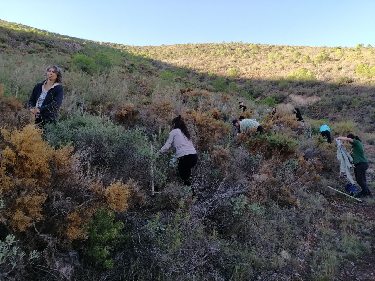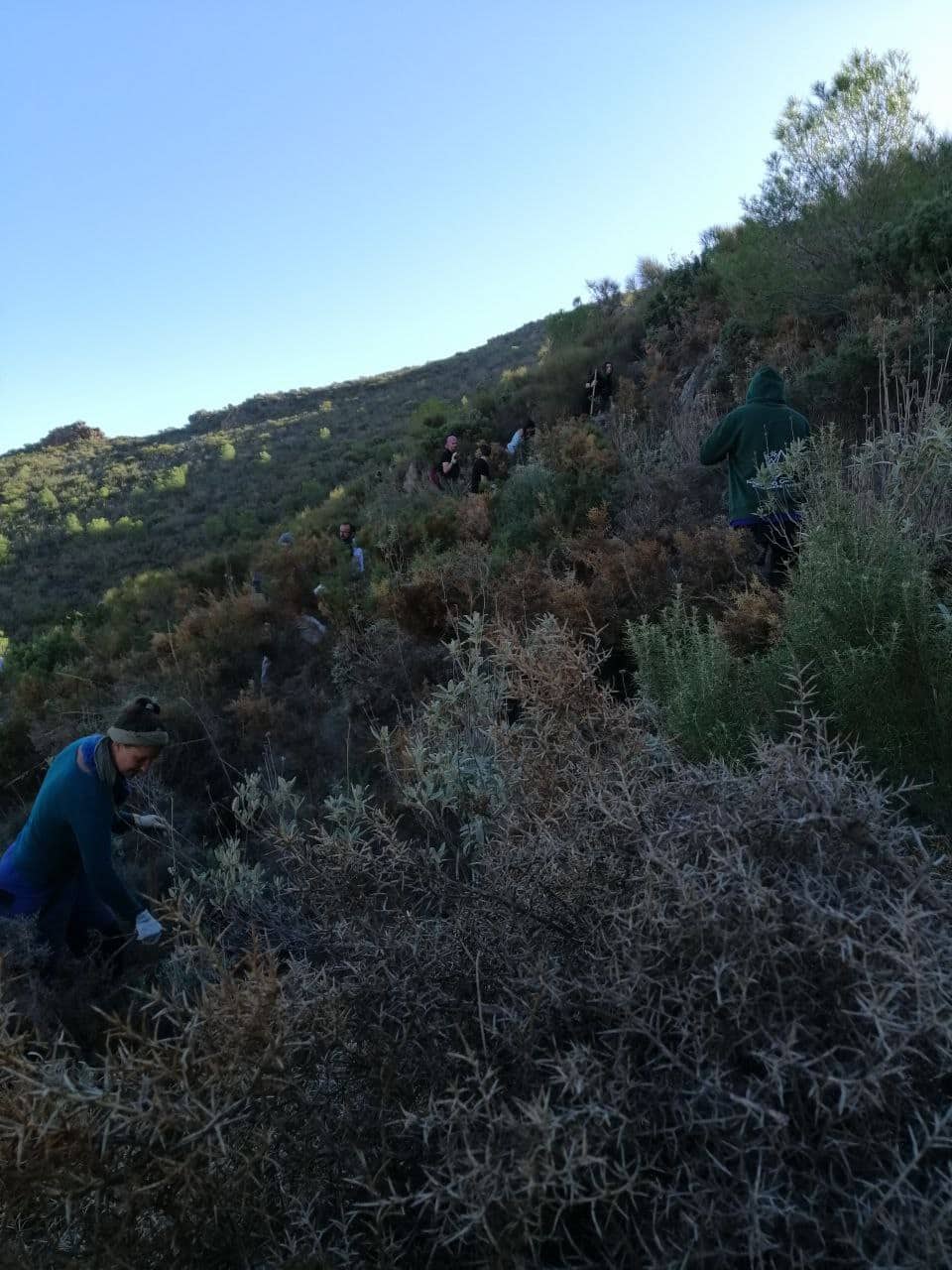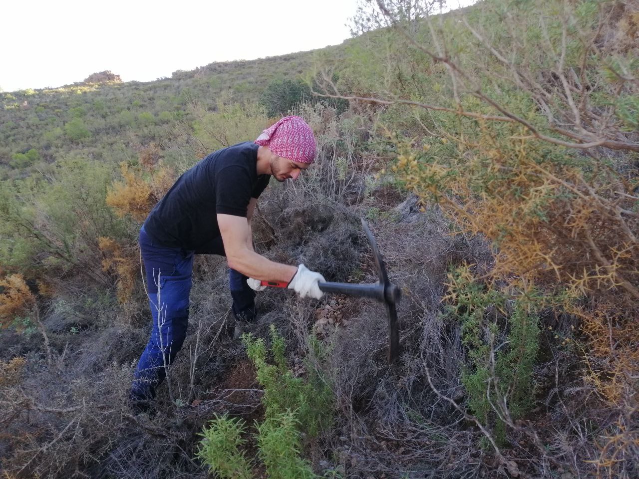 El sábado pasado dia 28 realizamos la primera jornada de voluntariado local de la temporada, en la cual también las participantes del programa de voluntariado Cuerpos Europeos de Solidaridad CES. Fuimos más de 30 personas actuando en la zona del Camino de los Mineros, en Sierra Lujar, acondicionando el terreno y preparándolo para las siembras de reforestación. Cavando pequeñas zanjas de infiltración en forma de medias lunas junto a las plantas nodrizas, para poder captar el agua de las lluvias y sembrar ahí las semillas en los próximos meses. Nos reencontramos con voluntarias del año anterior, ya de la familia y conocimos nuevas. Todas entusiastas de aportar su parte para regenerar nuestros bosques!