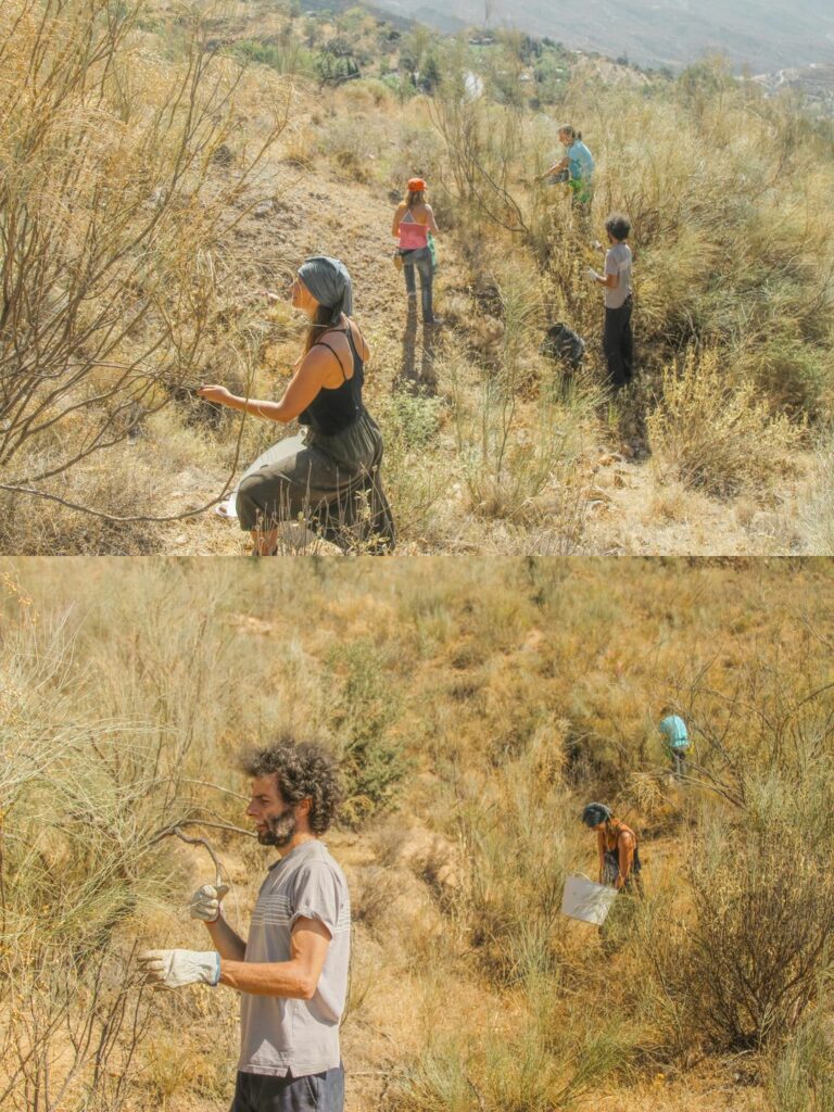 Como os anunciamos, el sábado pasado salimos a cosechar semillas de Retama. Fuimos un grupito de 10 voluntarias de todas las edades, desde niñas pasando por generaciones de 20s, 30s, 40s y 50s. Disfrutamos de una hermosa mañana, compartiendo conocimientos e inquietudes mientras recogiamos la preciadas semillas. El lugar escogido fue a unos 10 km de Sierra de Lujar, donde podíamos encontrar semillas de calidad en abundancia. Despues de cosecharlas las pusimos sobre la red para poder limpiarlas de ramitas y dejarlas listas para ser tratadas en el laboratorio. Este invierno sembraremos en Sierra Lujar estas pequeñas vidas que brotaran en la primavera.