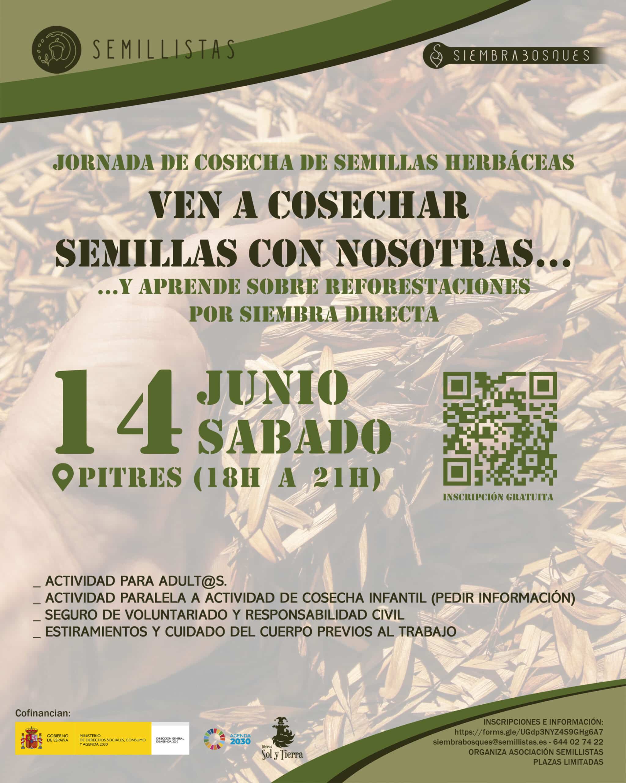 Fecha: Sábado, 14 de junio de 2025Horario: De 18:00 a 21:00 hLugar: Pitres (Granada)Inscripción gratuita – Plazas limitadas La Asociación Semillistas organiza una jornada participativa de cosecha de semillas herbáceas, dirigida a personas adultas interesadas en la restauración ecológica y las prácticas de reforestación mediante siembra directa. Durante la actividad, se ofrecerá una introducción práctica […]