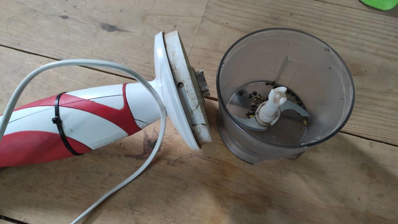 En este caso estamos experimentando haciendo huequitos a la semilla con una batidora.