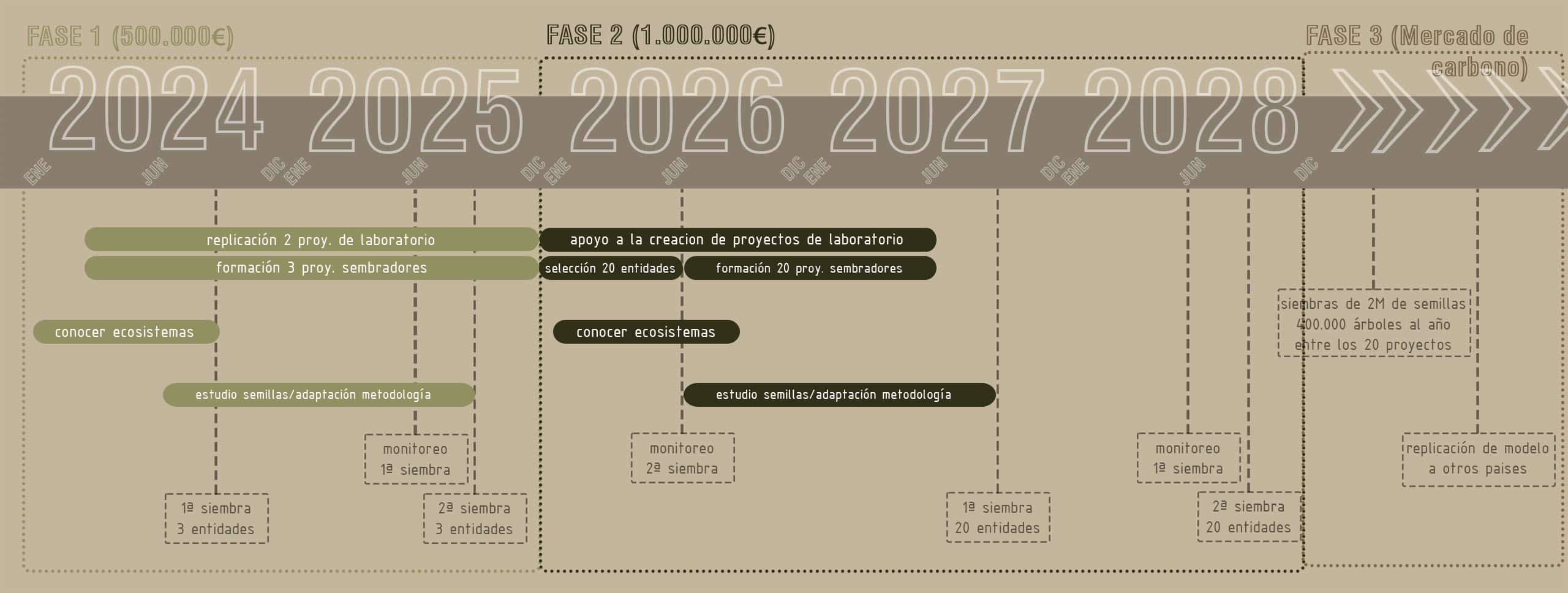 Nuestra planeación principal para los próximos 5 años implica la divulgación y replicación de nuestra metodología a toda la península Ibérica. Nuestros dos proyectos iniciales (SeedLab y SimbraBosques) continúan con sus objetivos propios, pero dedican parte de sus energías en poder realizar este salto de escala.