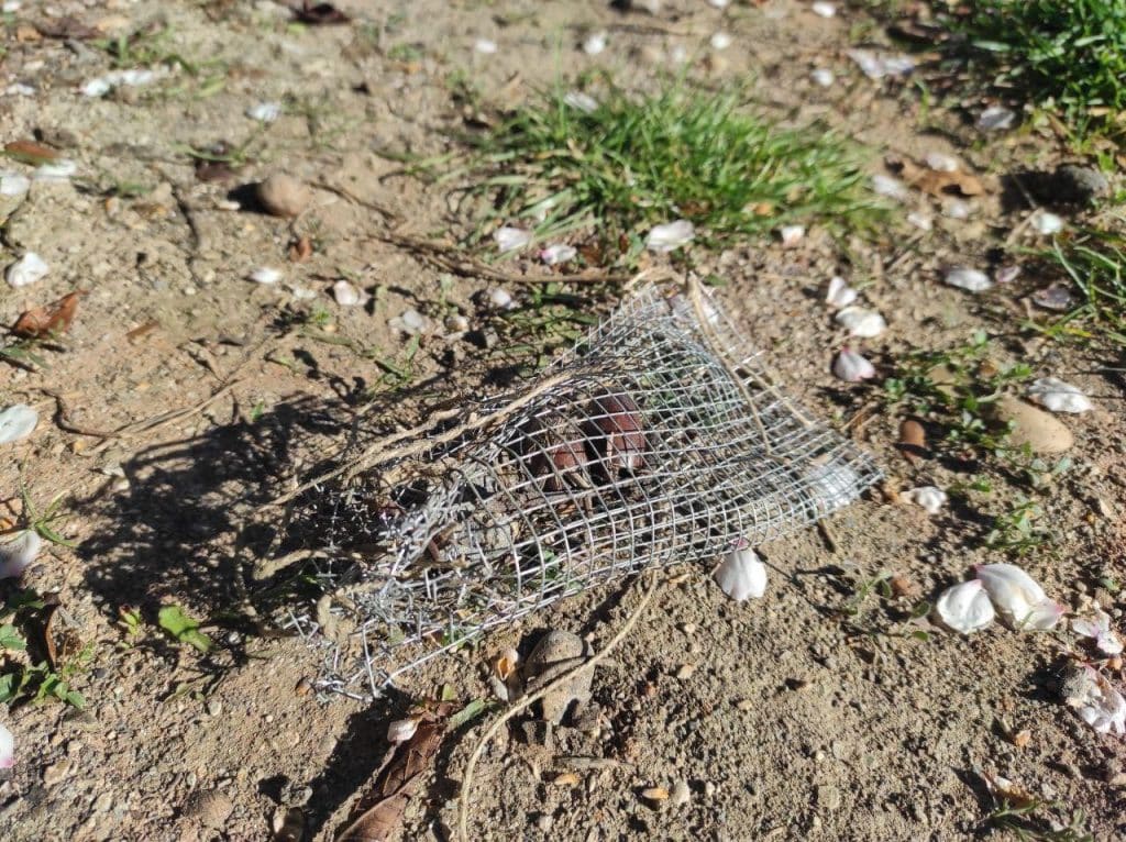 Aunque las plantas de nuestros montes pueden soportar sequías, la falta de agua tiene sus consecuencias en el ecosistema. Este año hemos podido observar en Sierra Lujar como en los pinos adultos hay un exceso de procesionaria (Thaumetopoea pityocampa), haciendo que los más débiles lleguen a secarse. La falta de agua también a provocado que las encinas (Quercus ilex) no hayan producido bellotas, que las lombrices permanezcan bien profundas en el suelo y que no pudieran desarrollarse las plantas anuales que alimentan con sus hojas frescas y sus raíces a los mamíferos de la sierra. Así, jabalíes, cabras montesas, ratones, etc, han padecido hambre, y se espera una alta mortalidad. En el “Camino de los mineros” de Sierra Lujar sembramos bellotas protegidas con malla de alambre (técnica de la Universidad de Palencia). El estrés en los jabalíes era tan alto, que cortaron con sus dientes el alambre de 350 protectores para comerse las dos bellotas que contenían cada protector. Este tipo de protectores nos funcionaron de maravilla en la Alpujarra, donde las acequias de la época morisca mantienen un ecosistema húmedo, donde los jabalíes sí tenían comida y no necesitaban romperse sus dientes para obtener un par de bellotas encerradas en una malla.