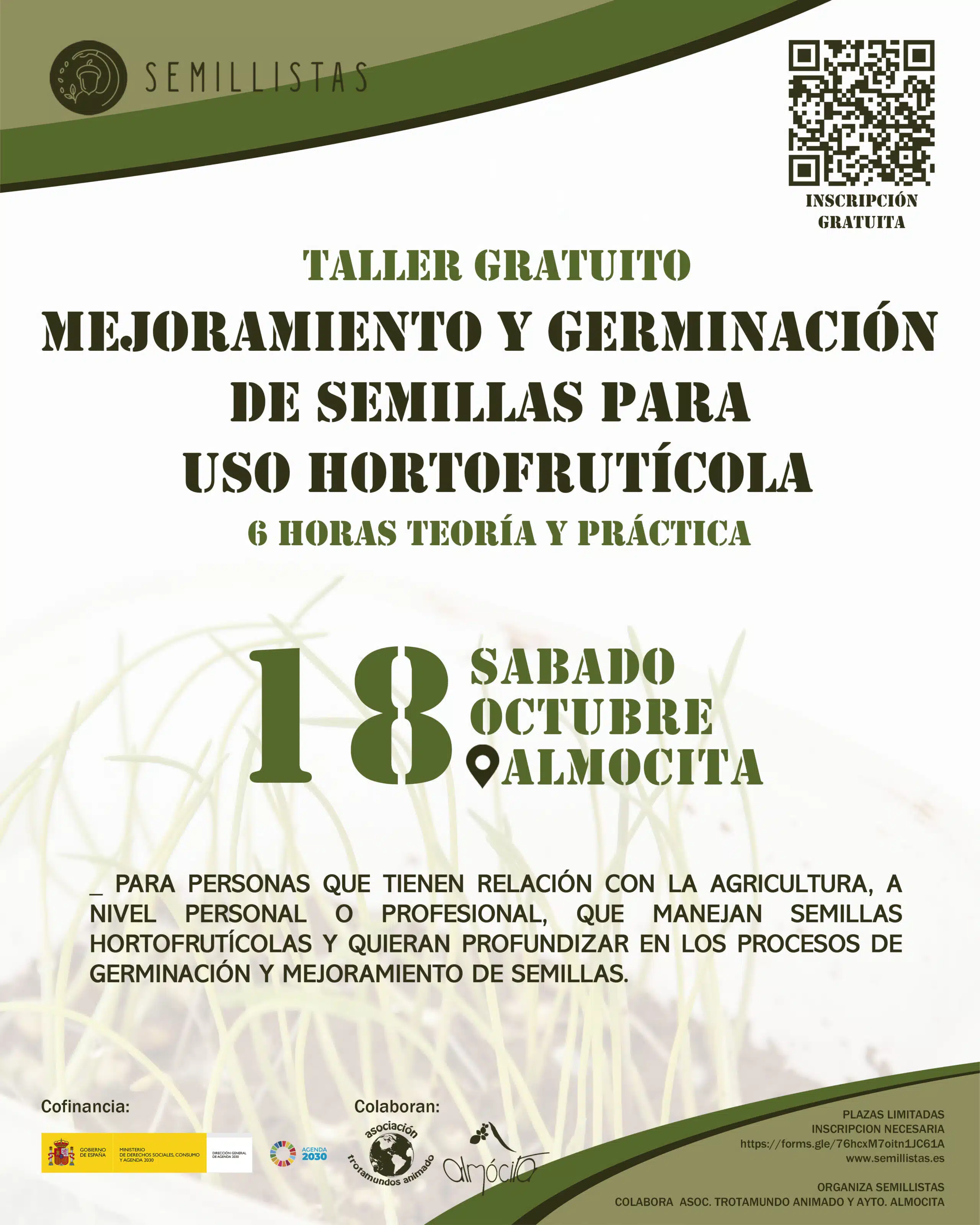 Taller de 6 horas teoría y práctica. Dirigido a personas que tienen relación con la agricultura, a nivel personal o profesional, que manejan semillas hortofrutícolas y quieran profundizar en los procesos de germinación y mejoramiento de semillas. Algunos de los aspectos que se tratarán en el taller: Introducción a la germinación y a los mejoramientos […]