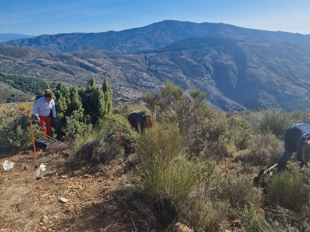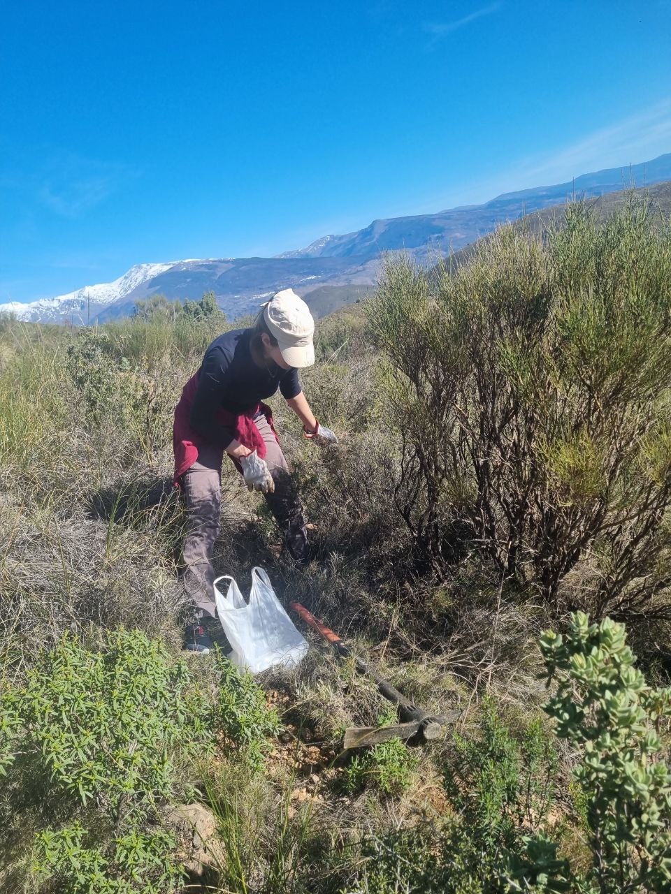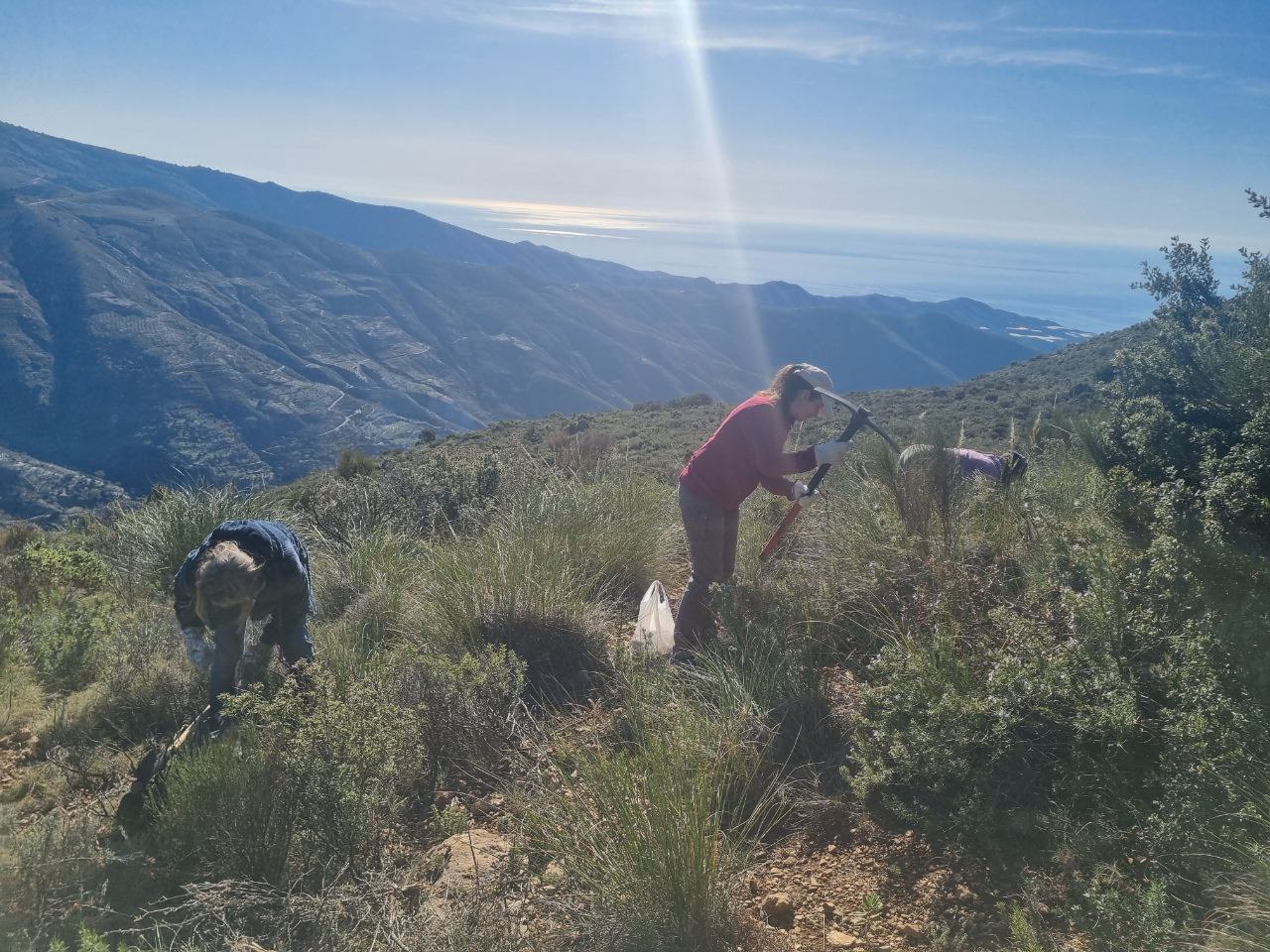 El pasado domingo dia 18 volvimos a Sierra Lujar a la zona que llamamos Olias 2, para seguir sembrando bellotas dentro de los seedshelters, aprovechando el agua de la tierra dejada por las últimas lluvias. Fue una jornada intima, con un grupito reducido de voluntari@s. Fuimos unas 10 personas y sembramos 300 seedshelters – 600 bellotas. Una jornada muy agradable, con algunas asiduas, ya casi de la familia como Nial y Fi, y otras personas nuevas que disfrutaron mucho de la actividad y todo lo que aprendieron con nosotras.