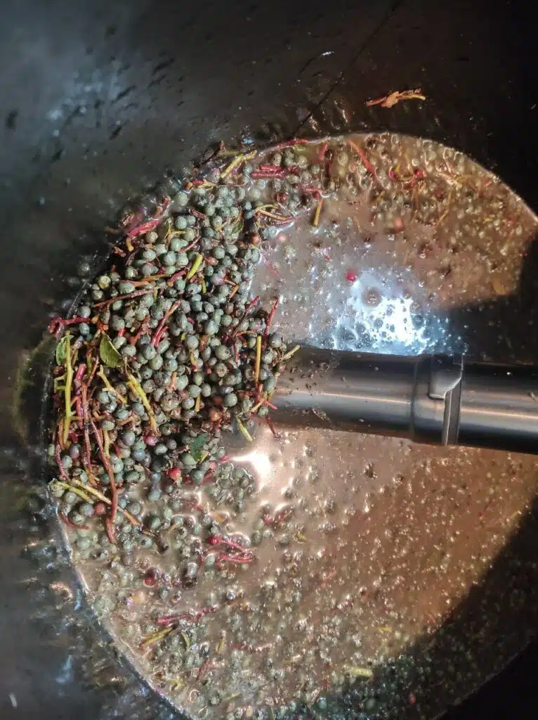 Cada ramita que recogimos contenía semillas de colores distintos: verdes azuladas y rojas. Las semillas rojas están vacías y no sirven para germinar, mientras que las verdes azuladas son las que nos permitirán continuar con nuestro trabajo de reforestación. La cosecha es solo el primer paso; luego debemos separar las semillas de las ramitas, someterlas a flotación para identificar las mejores, dejarlas un día a remojo y batirlas con cuidado para retirar la pulpa sin dañar la semilla.